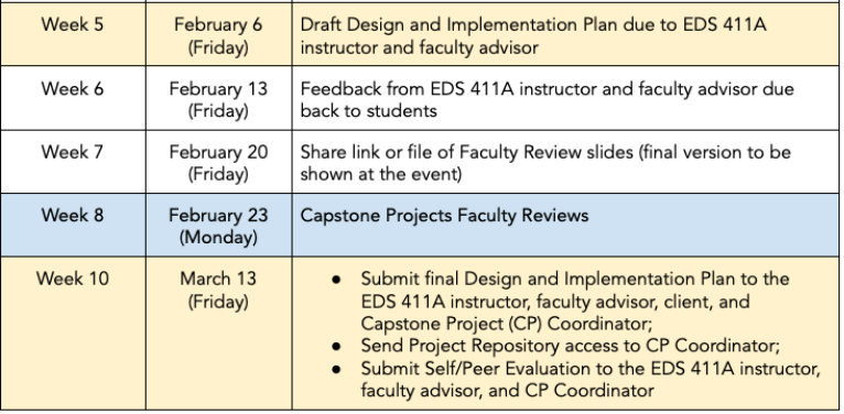 Upcoming capstone deadlines