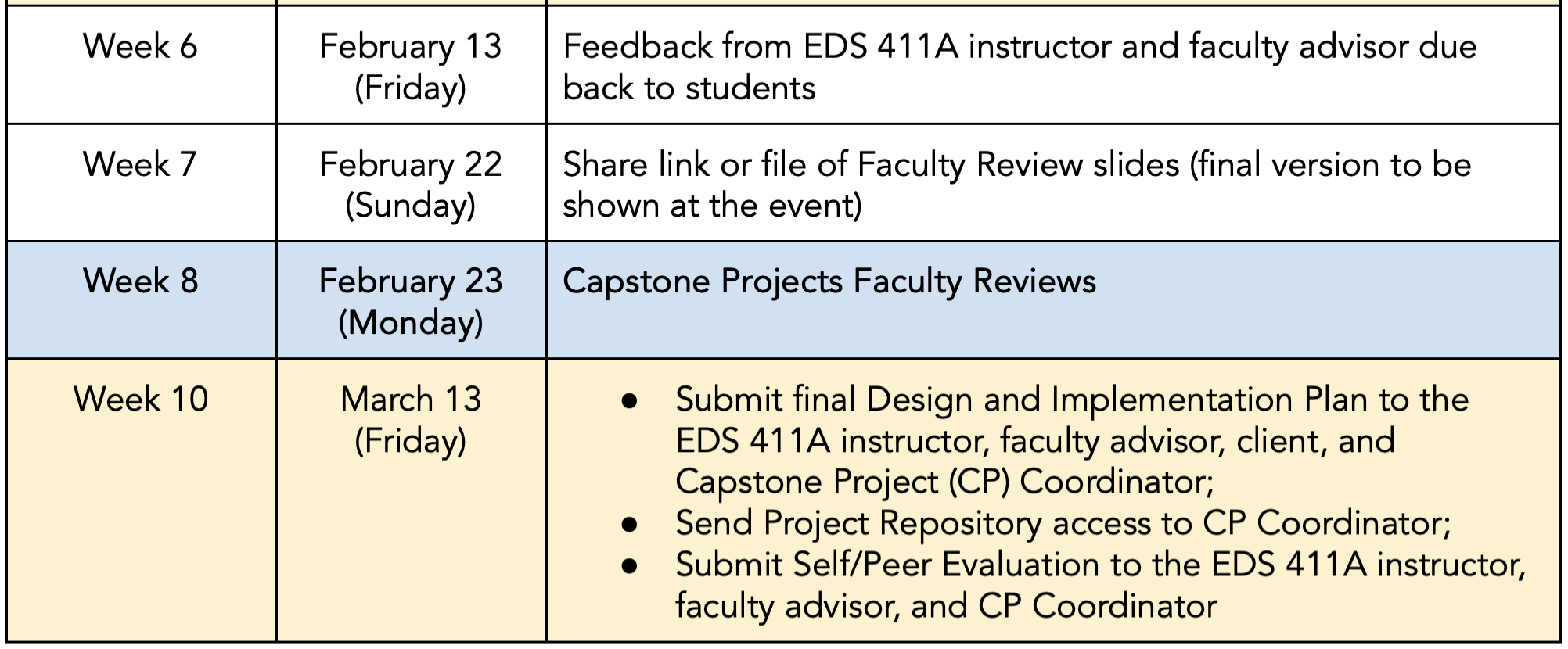 Upcoming capstone deadlines